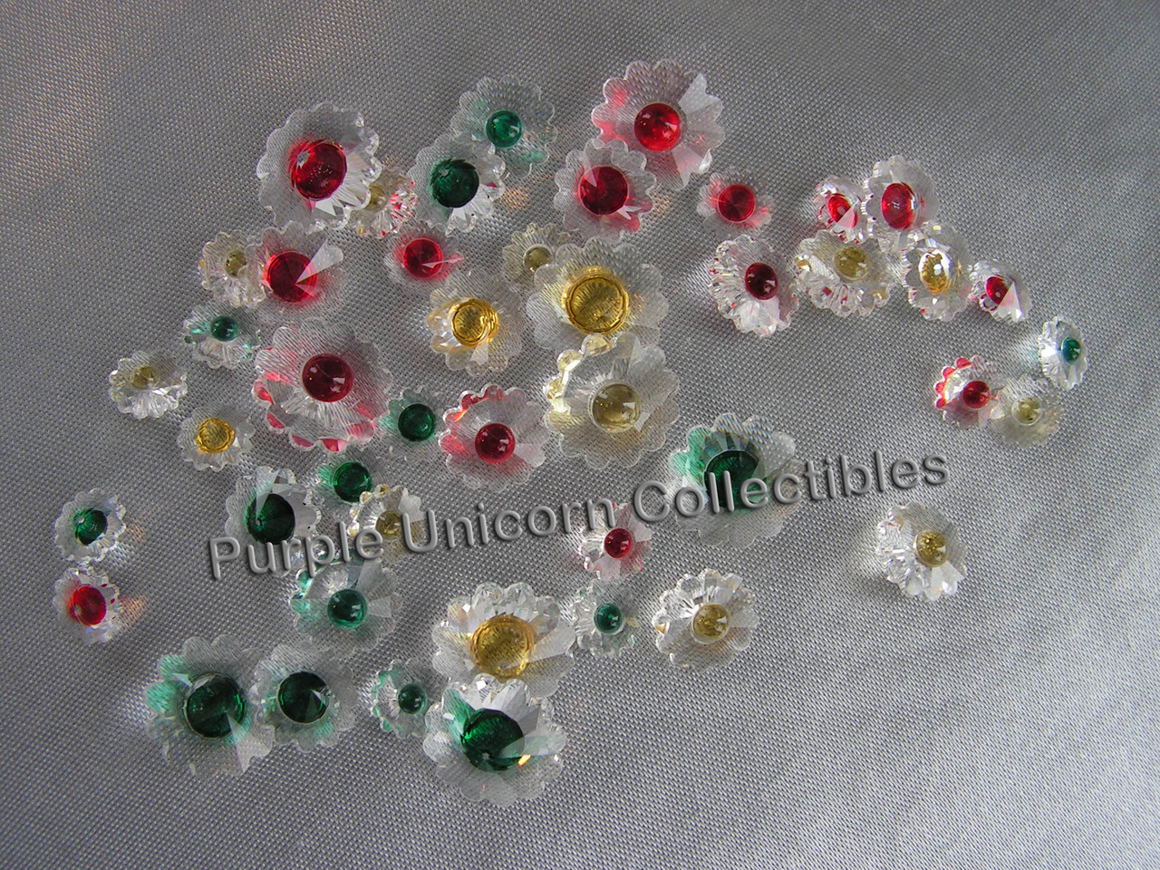 There are about 40 mini marguerites in each package, with an assortment of yellow, green, and red centers in three different sizes.
